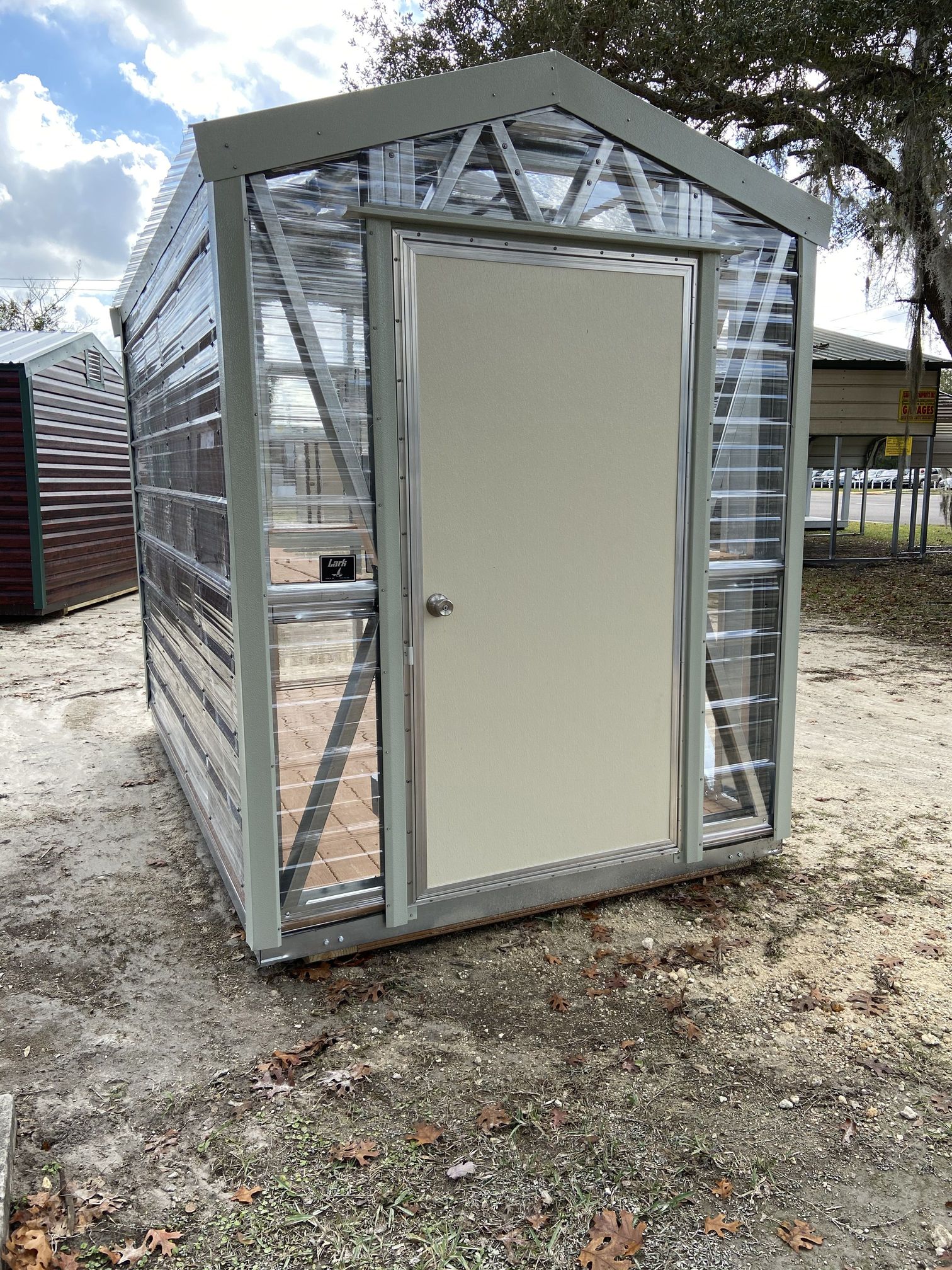 All walls and roof frames as well as the floor structure are manufactured using 18 gauge G-90 galvanized steel. On our Greenhouse floor structure, it comes standard without a floor, but we offer as an option a plastic composite floor that will give many years of maintenance free use. The exterior of the greenhouse is covered with professional grade fiberglass or poly-carbonate panels manufactured specifically for greenhouse use and performance. The Lark Accu-Steel Greenhouse is designed to give the quickest and most efficient growth to your plants and to promote fast rooting of cuttings and efficient germination of your seed beds.
